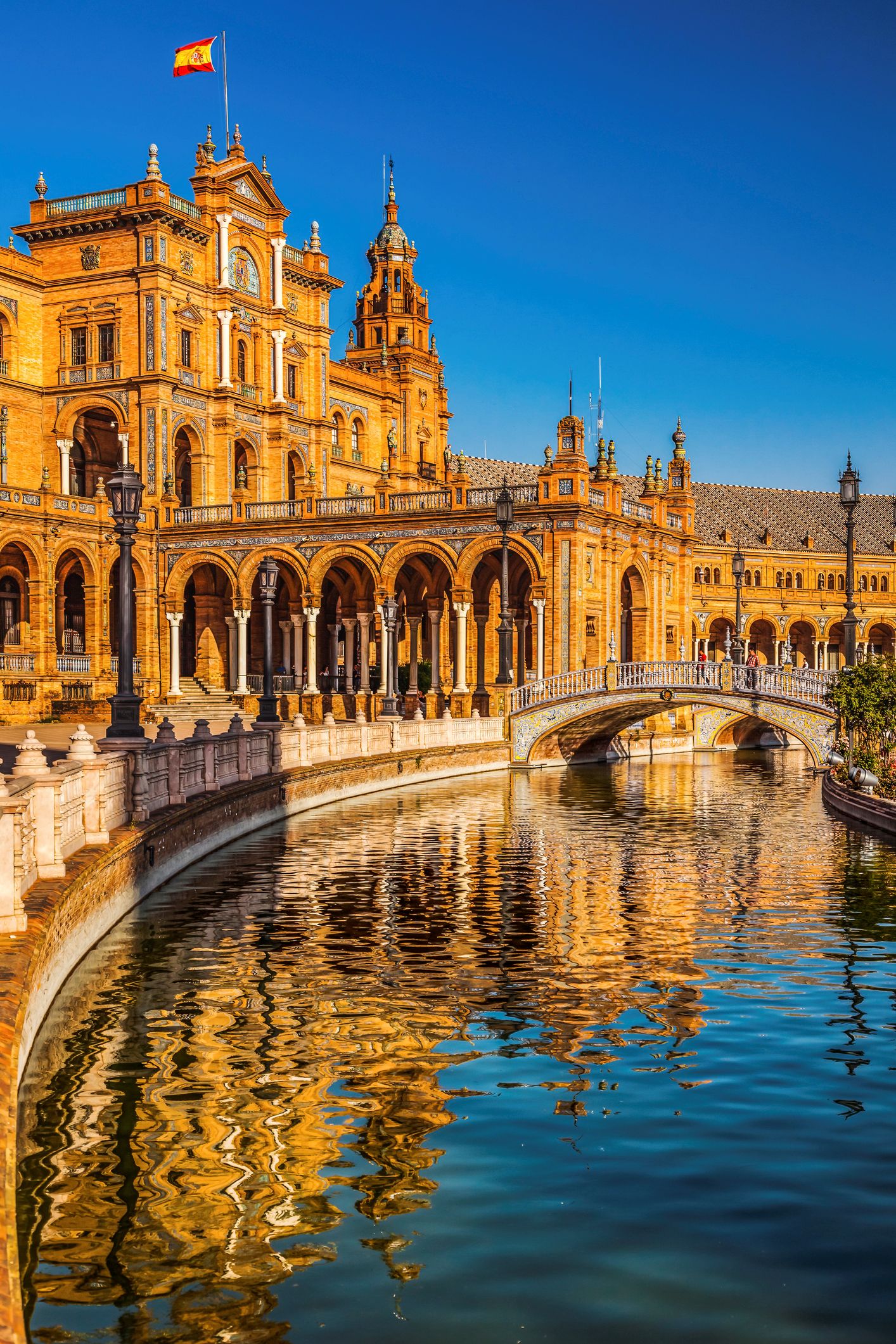 Além disso, a arquitetura da cidade encanta com paradas obrigatórias no Palácio dos Reais Alcázares e na Catedral Gótica de Sevilha. Também é imperdível saborear suas autênticas tapas no bairro de Santa Cruz. A hospedagem na cidade proporciona um hotel que já foi um antigo palácio e projetado para ser o mais luxuoso da Europa. Construído para abrigar os chefes de estado na Grande Exposição Ibero-Americana de 1929, o hotel continua a tradição de requinte em todos os quartos, que seguem a decoração clássica espanhola.