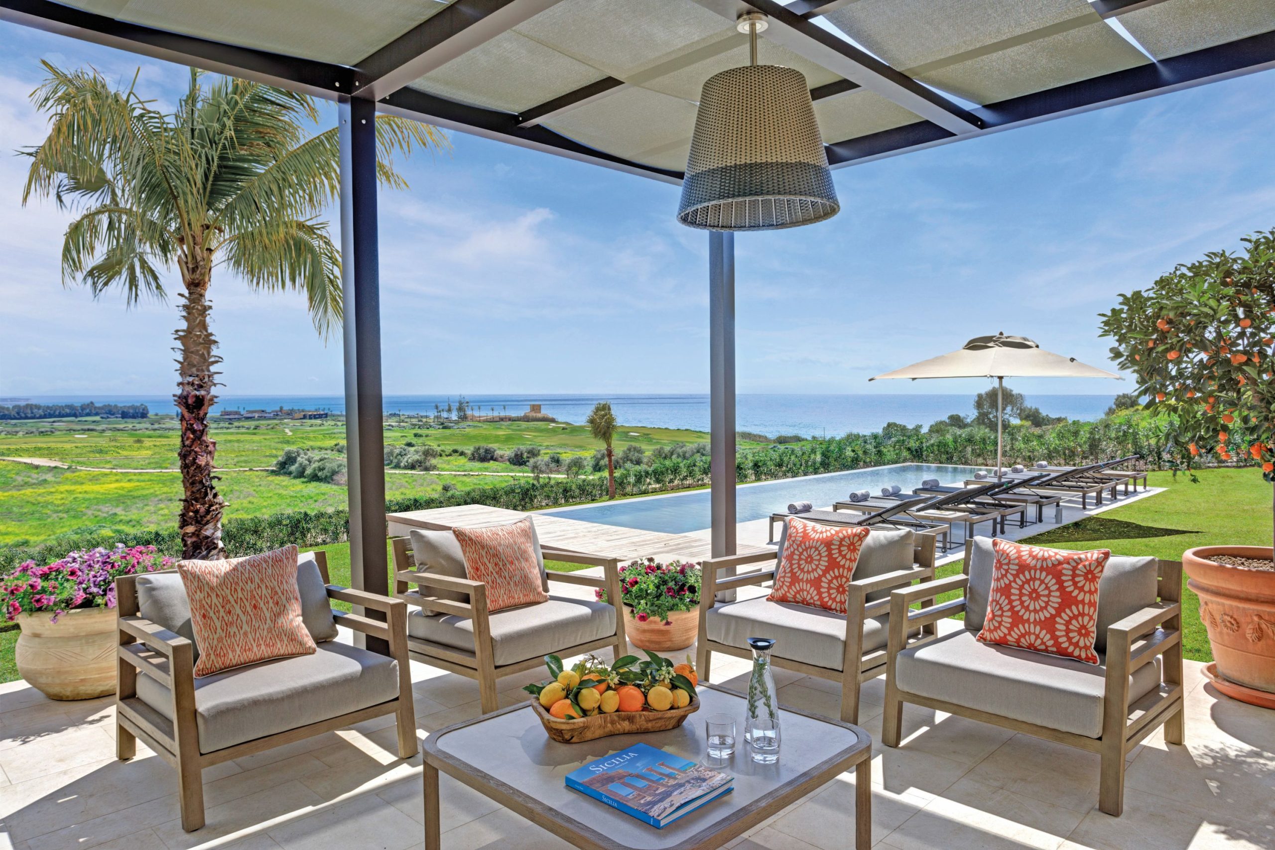 Na costa sudoeste da Sicília, o Verdura Resort estende-se por 230 hectares de olivais e pomares, oferecendo uma infraestrutura voltada para o esporte e a gastronomia. Recentemente eleito o melhor hotel de golfe da Europa, possui dois campos de campeonato de 18 buracos assinados por Kyle Phillips.