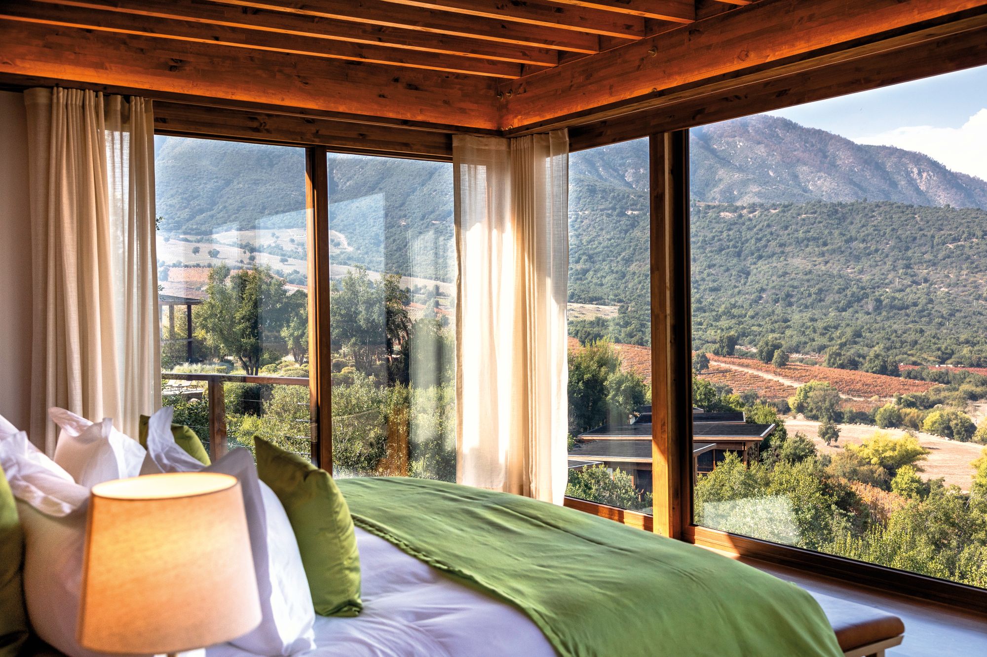 Espaçosas e muito intimistas, as dez acomodações — villas e casitas — se espalham numa encosta verdejante sobre os 560 hectares de terra, sendo 400 hectares de floresta nativa e 160 hectares de vinhas orgânicas e biodinâmicas. Mais do que de exclusividade, a sensação é a de ser um convidado da família Marnier Lapostolle, criadora do clássico licor Grand Marnier e que carrega a tradição vinícola desde 1827.