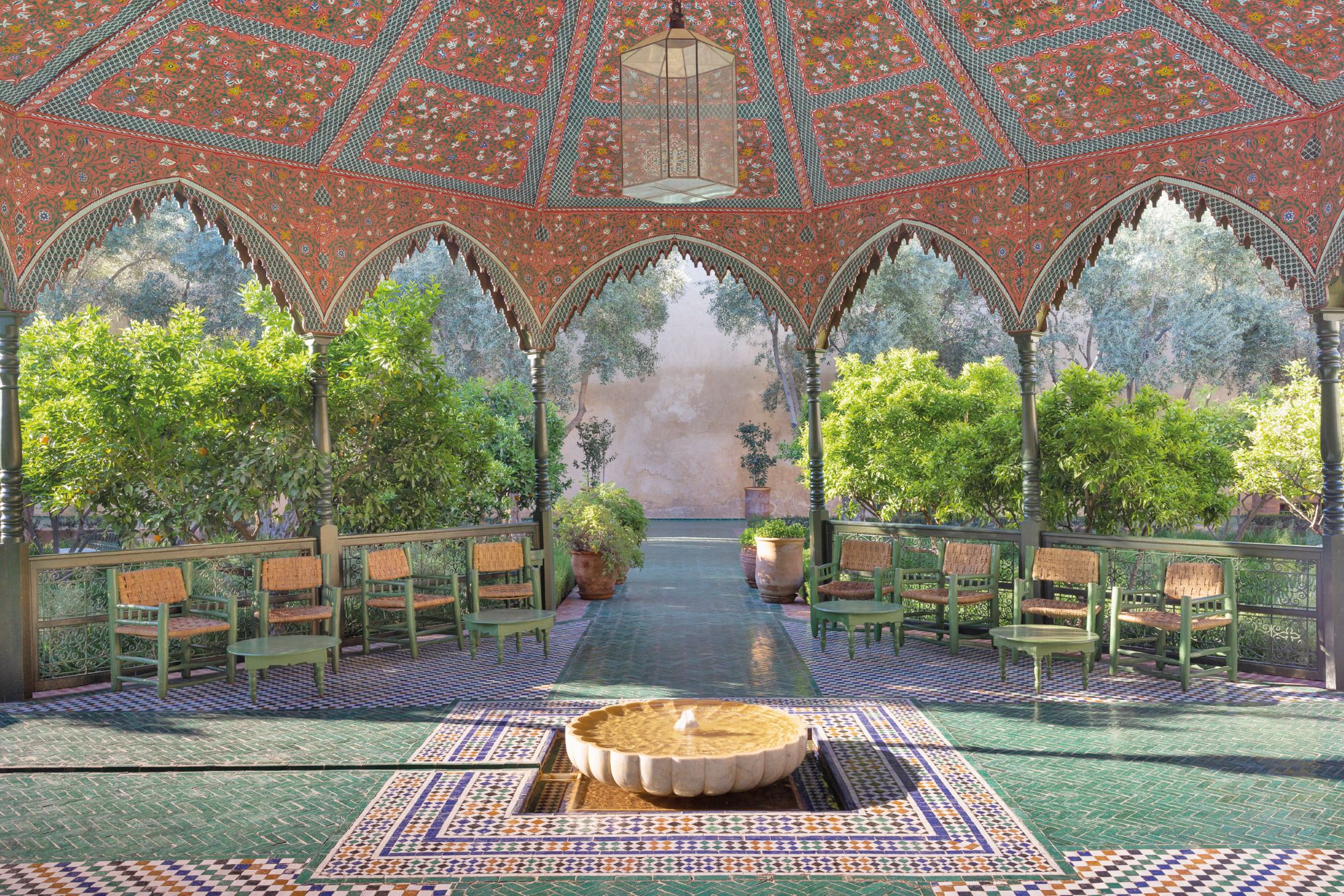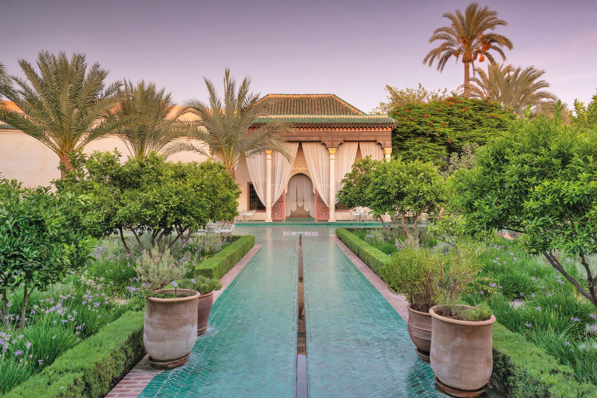 O crème de la crème fica para a noite: jantar no restaurante Le Marocain, no hotelLa Mamounia. Esse palácio transformado em hotel está instalado numa área de jardim de impressionantes 17 hectares, entre pomares, oliveiras, palmeiras centenárias e fontes.