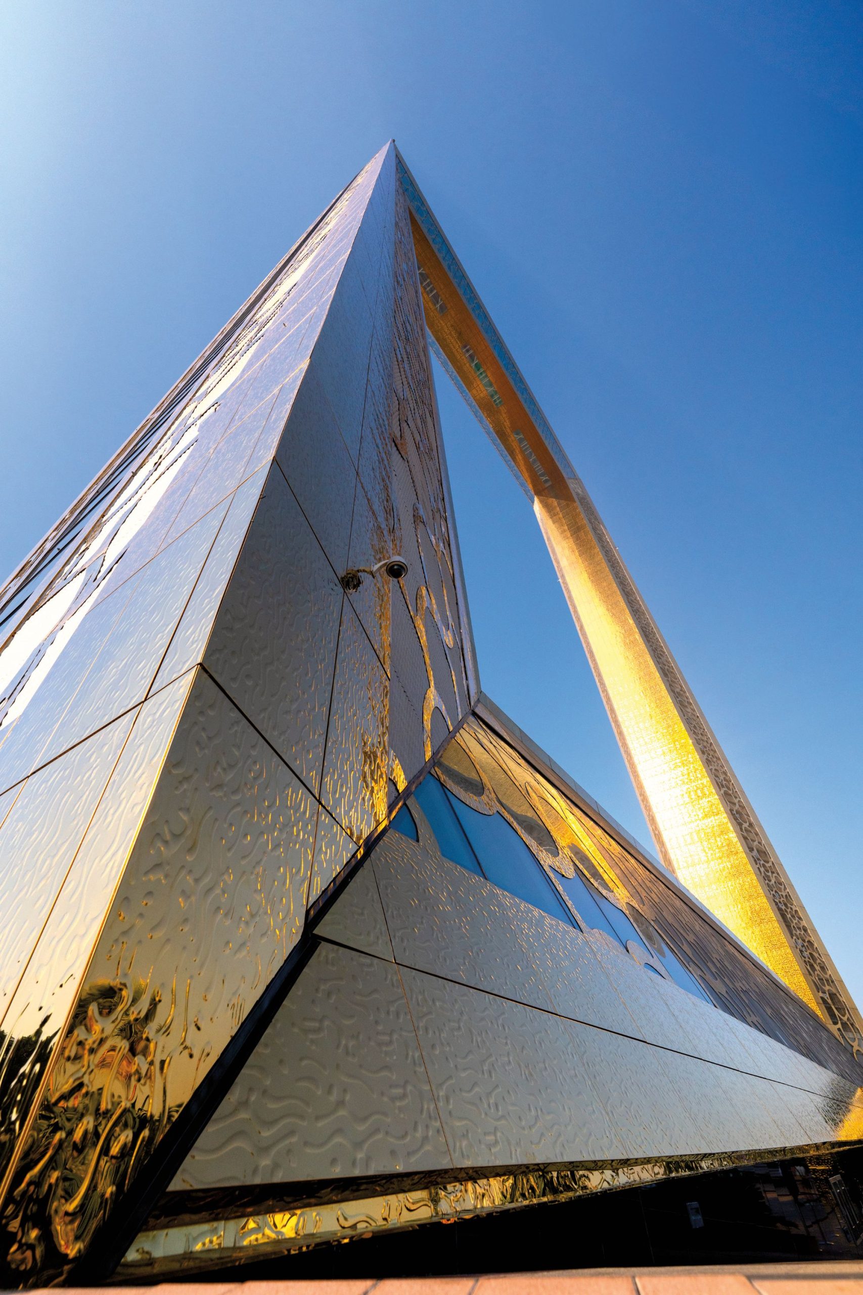 O Dubai Frame é outro monumento que de longe já chama a atenção. No formato de moldura de quadro, ele foi idealizado para ser quase uma máquina do tempo. São duas torres de 150 metros de altura conectadas por uma ponte de 93 metros de largura. Cada face dessa moldura enquadra os melhores ângulos do Emirado, destacando a Dubai antiga, ao norte, e a moderna, ao sul. O museu conecta o passado e o futuro combinando efeitos tecnológicos e experiências sensoriais. A ideia é mesmo transportar os visitantes nessa linha do tempo.