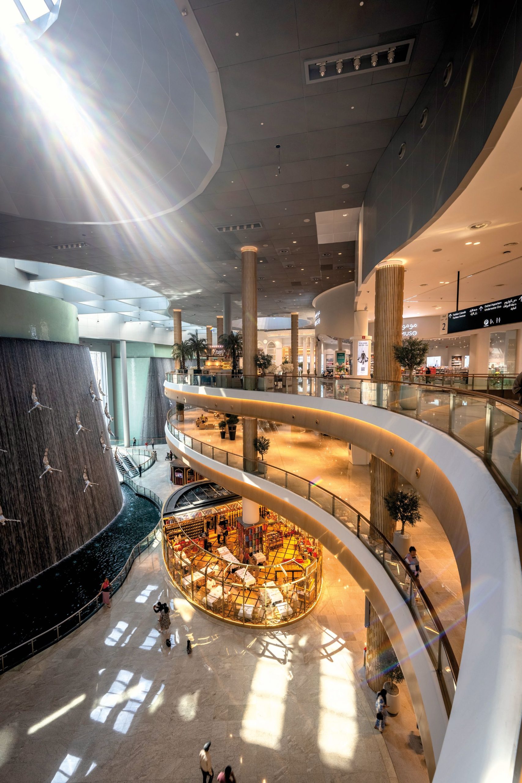 Dubai não pensa pequeno. A poucos passos da Fonte Dançante fica uma das entradas do Dubai Mall. Com área de 1,1 milhão de metros quadrados, 1,2 mil lojas e 200 bandeiras de alimentação internacionais, é impossível percorrê-lo em apenas um dia. Dentro dele encontram-se uma Galeria Lafayette e uma Bloomingdale’s, além de um aquário de 10 milhões de litros de água, uma pista olímpica de patinação no gelo, uma Chinatown, um museu digital imersivo, 26 salas de cinema e uma das maiores lojas de doces do mundo. Surpreendentemente, o shopping vai ficar ainda maior. Planos ousados de expansão do complexo já estão em andamento.