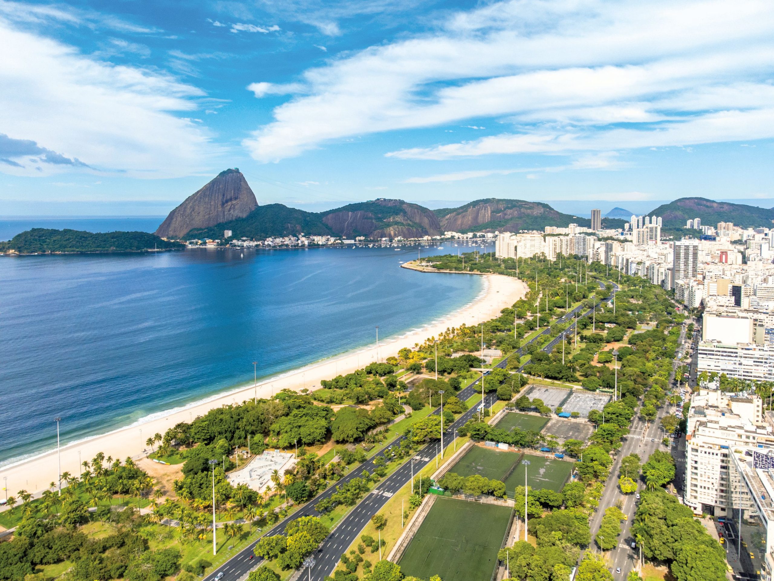 Também no Rio, é outro projeto histórico — quase zero jardim, totalmente artsy. O redesenho do pavimento então preexistente foi executado em 1971, baseado num padrão português de ondas (“Mar Largo”) originário da Praça do Rossio, em Lisboa. Burle Marx reconfigurou o design, alongando as curvas e integrando-as a um conjunto gráfico mais amplo, característico de seu abstracionismo formal. O resultado é a extensa paisagem artificial (sem o sentido negativo da palavra) de 4 quilômetros de extensão, com utilização de mosaicos (cacos) de pedra portuguesa em preto e branco para criar um padrão de ondas que quebram. É, provavelmente, a sua obra mais popular numa escala global.