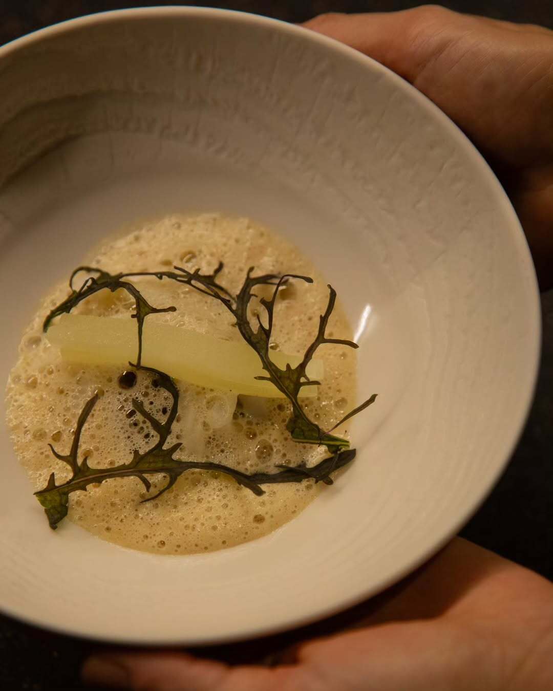 Produtos sazonais, na maioria orgânicos e vindo diretamente de suas duas hortas: assim podemos descrever os insumos de seu cardápio. No menu degustação de 15 pratos, as folhas e vegetais, como cogumelo enoki e maxixe, são combinados com os melhores frutos do mar e proteínas locais, que incluem vieiras suculentas e os melhores peixes.