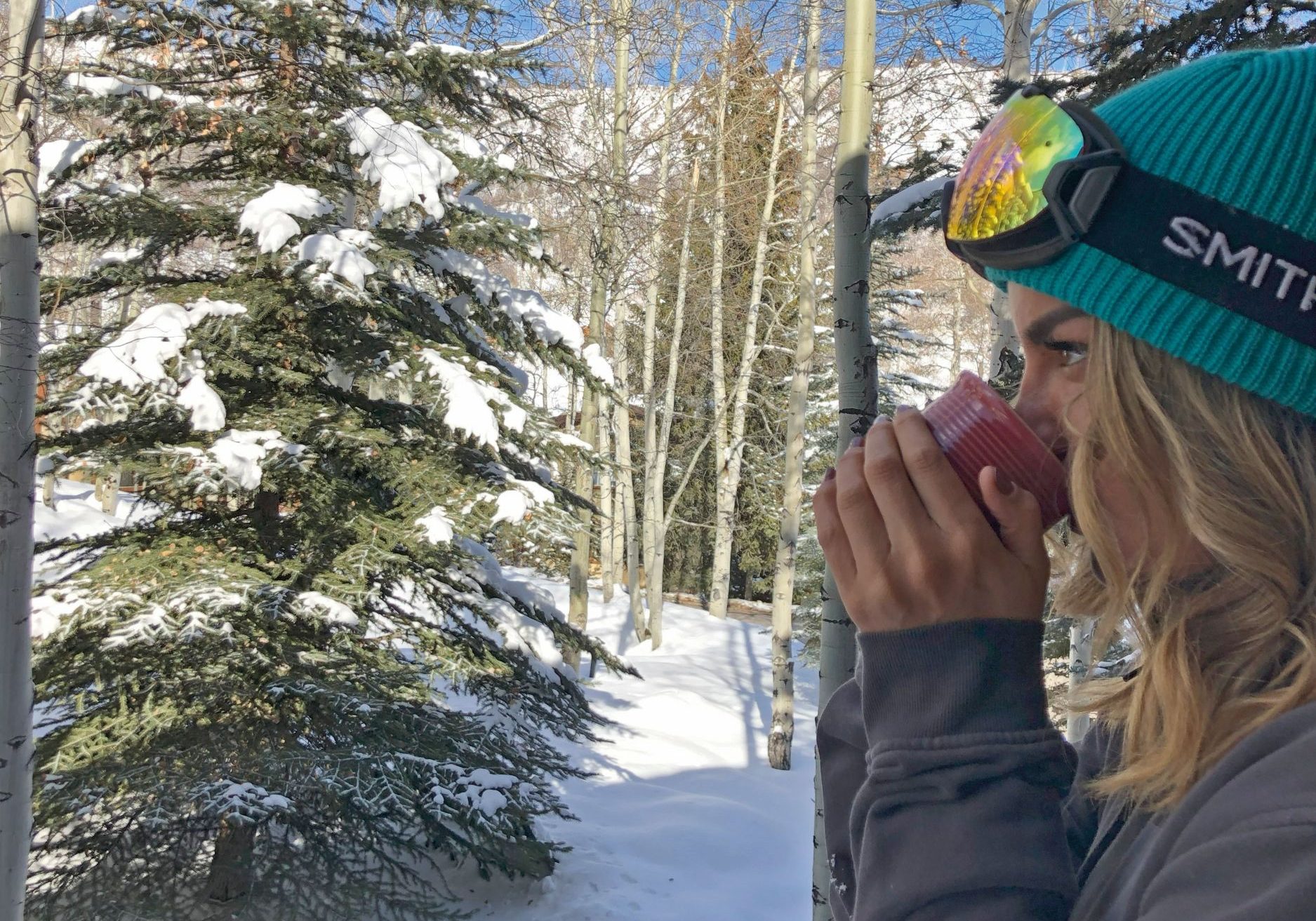 Nada como uma bebida quente com a vista das montanhas nevadas Cortesia Flavia Vitorino