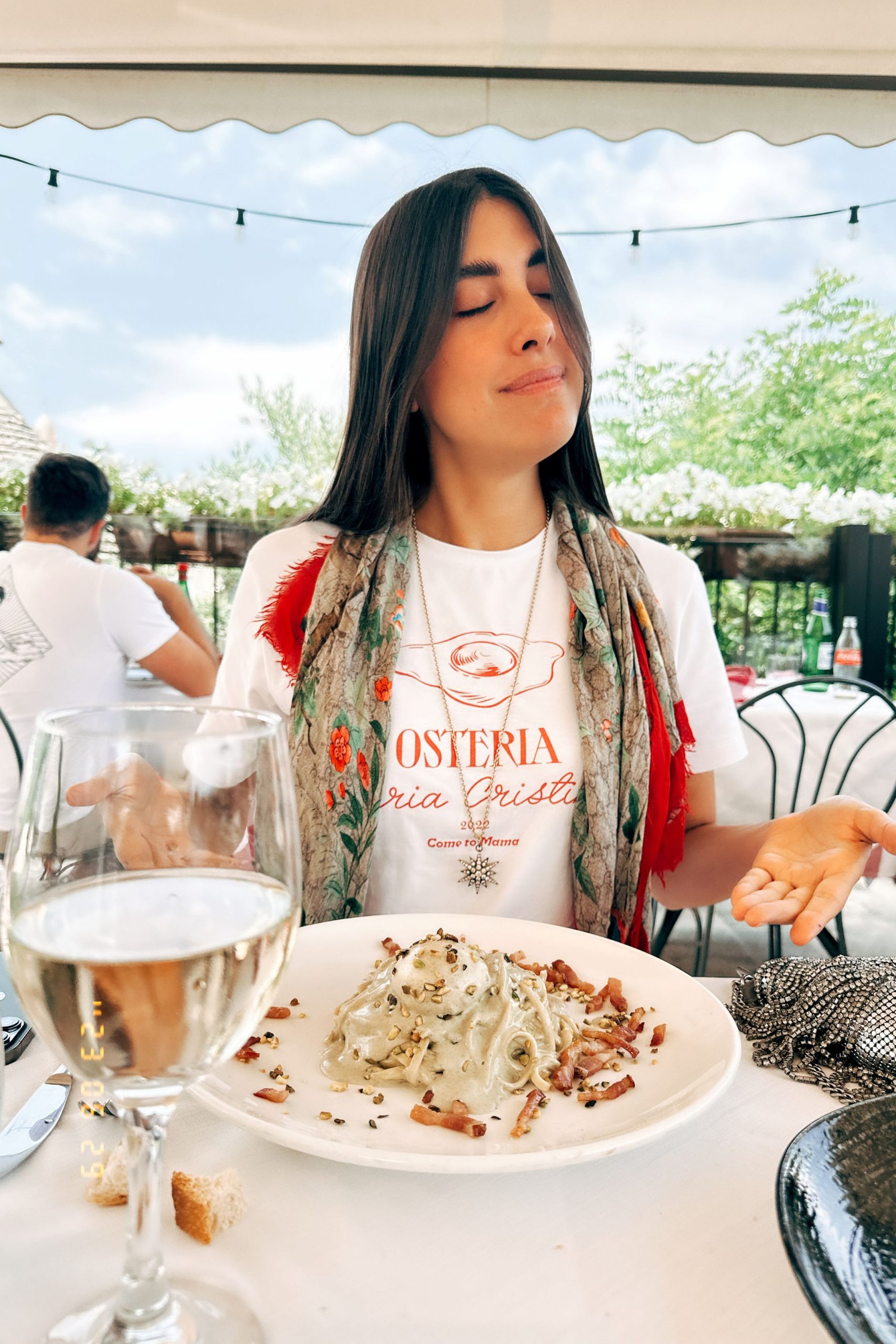 Tagliolini al pistacchio do Il Pinnacolo, Puglia: me dá vontade de chorar só de pensar. Uma pequena epifania entre os telhados cônicos de Alberobello