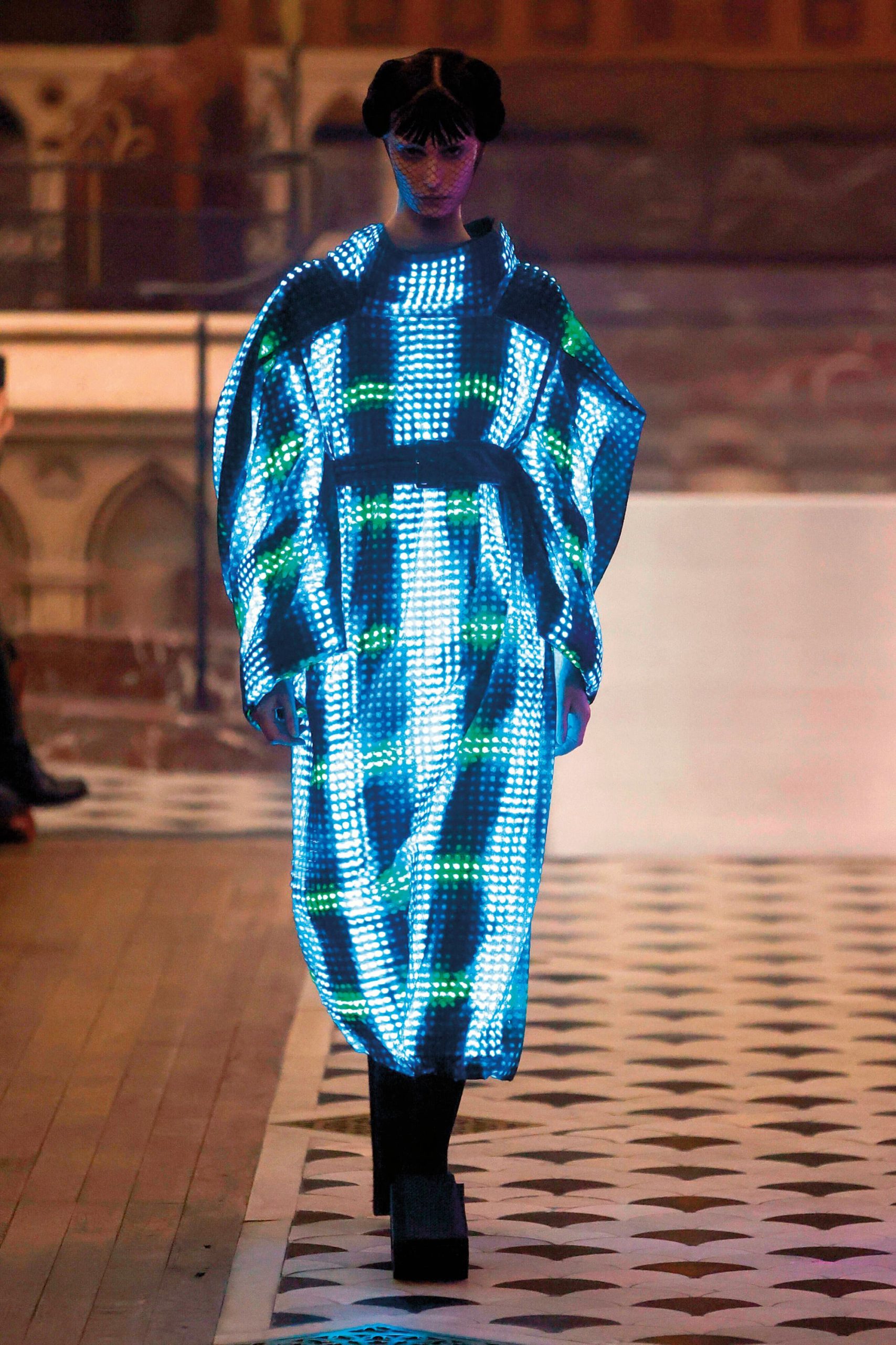 Também na Paris Fashion Week, a marca japonesa Anrealage mostrou roupas pretas que serviram como telas dinâmicas, exibindo mensagens que mudavam conforme o humor do usuário. “As roupas — como a própria vida — nunca param de evoluir; não há uma forma final”, disse Kunihiko Morinaga, o mais tech entre os estilistas, que em 2018 apresentou suas coleções no Japan House de São Paulo.