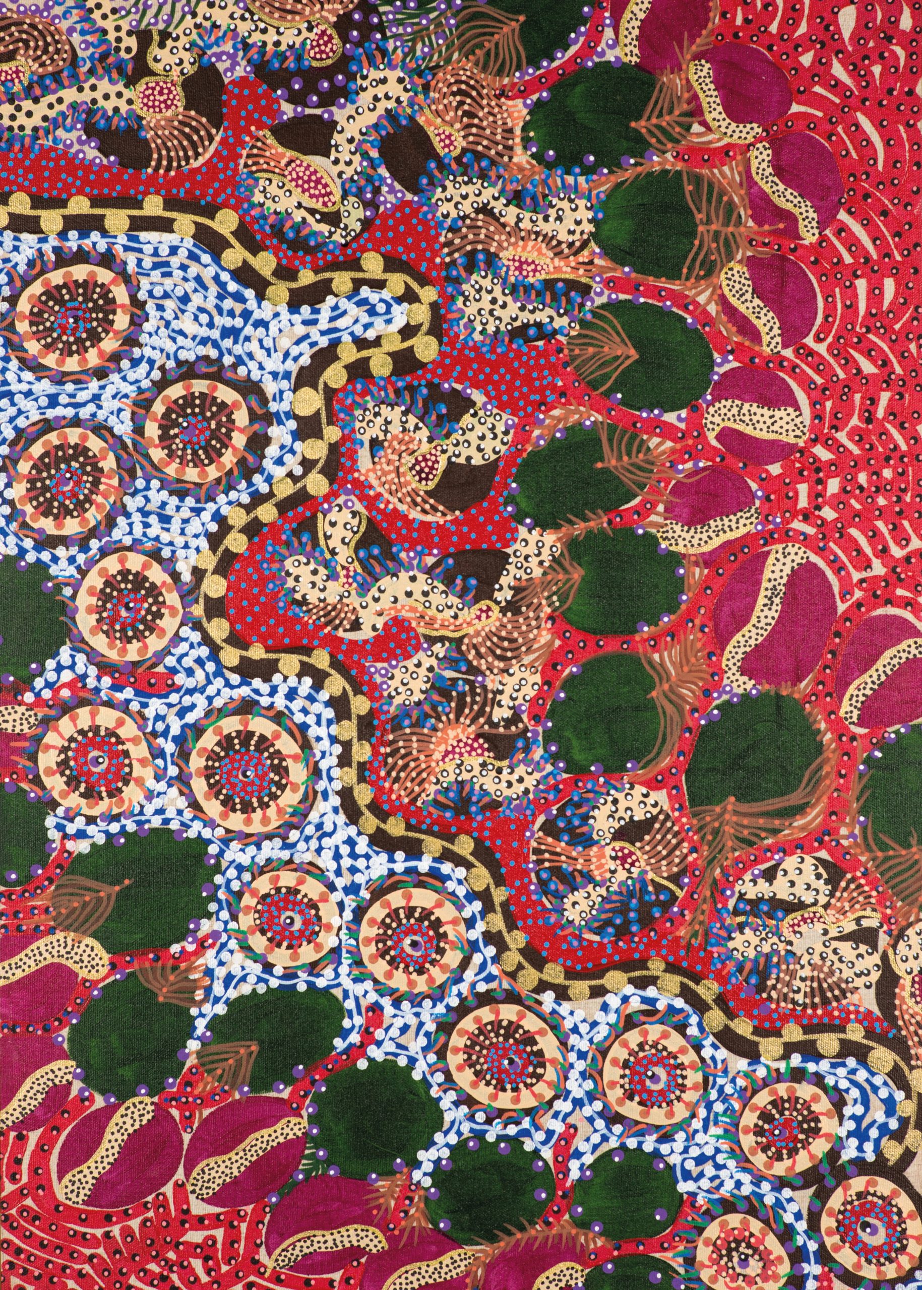Nascido em Petrolândia, Pernambuco, Aislan é originário do povo indígena Pankararu e dedica-se integralmente às artes visuais, em pinturas, desenhos e instalações com formas orgânicas que podem remeter a células e moléculas do corpo humano, mas que também têm muito das cosmogonias de sua cultura.